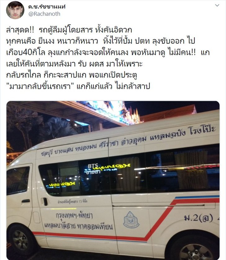 ผู้ใช้ทวิตเตอร์ชื่อ @Rachanoth โพสต์ โชเฟอร์รถตู้ขี้ลืมทิ้งผู้โดยสารทั้งคันรถไว้ภายในปั๊มน้ำมัน